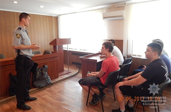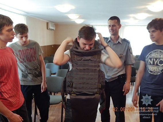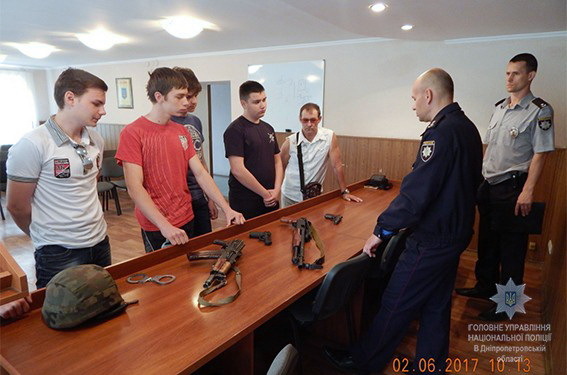 Старший інспектор відділу поліції Олександр Коняєв розповів підліткам історії створення пістолета Макарова і автомата Калашникова, їх тактико-технічні характеристики та продемонстрував неповне розбирання та збирання зброї. Підлітки із цікавістю спостерігали за діями інспектора і висловили бажання спробувати теж саме.