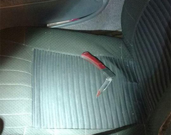 Правоохранители заметили, что на белом автомобиле четко видны следы крови. Также во время остановки они увидели на переднем пассажирском сиденье окровавленный нож. Предоставить какие-либо документы на право управления автомобилем нарушитель также не смог. Смог только рассказать патрульным, что сел в заброшенный автомобиль на ул. Саксаганского. При проверке информации по указанному адресу полицейские обнаружили тело мертвой женщины с двумя ножевыми ранениями в грудь.