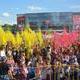 Кульминации праздник достиг после того, как сцену вышел мэр города Андрей Белоусов, который поздравил всех с Днем молодежи. Тогда же был объявлен всеобщий флешмоб. Только представьте: сотни каменчан, разделившись на группу желтого и малинового цвета, одновременно подбрасывают вверх порошок, соответствующий цвету своей группу. Моментально воздух окрасился в цвета, символизирующие флаг Каменского.