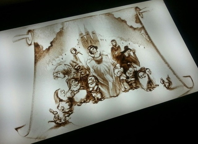 На открытии выставки Анастасия Меленцова на глазах у публики создала песочную композицию «Тримай». А еще более 40 песочных работ, зафиксированных цифровым фотоаппаратом, можно увидеть на стендах выставки.