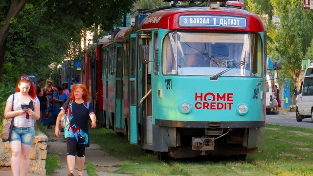 Сегодня, 13 августа, около 18:45, на пересечении проспектов Яворницкого и Гагарина столкнулись Porsche Cayenne и трамвай №1.