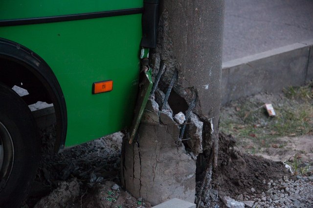 Авария случилась примерно в 18:50. «118-я» ехала в сторону центра. Водитель не справился с управлением и врезался в столб. Сам виновник аварии объясняет, что авария случилась из-за того, что солнце заслепило ему глаза.