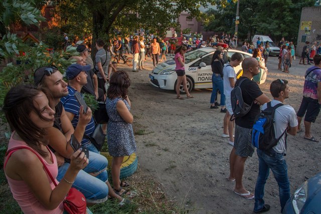 Всех жителей дома немедленно эвакуировали. Вокруг горящего здания собралось много людей.