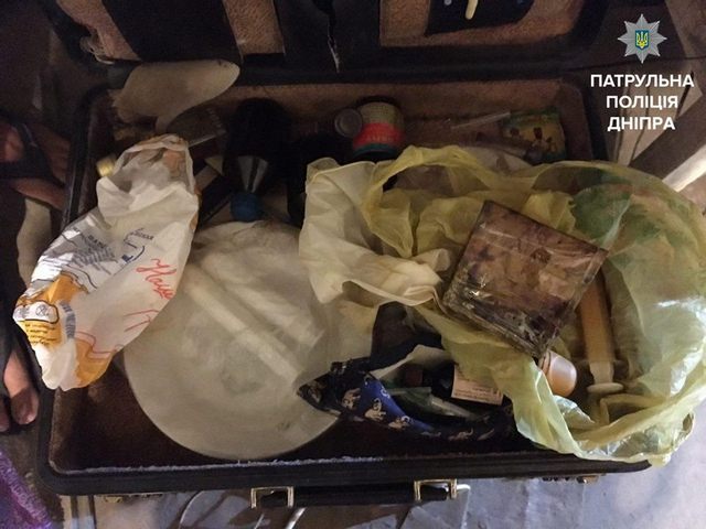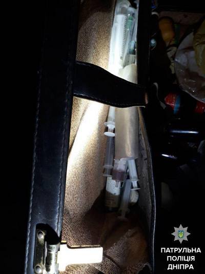 Также в чемодане патрульные нашли почти 150 шприцев разного объема, многие из которых были заполнены веществом, похожим на наркотическое, медицинские препараты, перчатки, жгуты, металлическую посуду, электрическую печь, сухой спирт.
