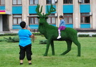 Во вторник,19 сентября, пчелу демонтировали и увезли на ремонт. Таким образом, с клумбы перед горсоветом исчезли все фигуры, имевшие крылья. Судя по болтающемуся уху одного из оленят, малыши будут следующими.