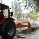 На месте порыва трубы работают мастера КП «Теплосети». Они разрывают дорогу, чтобы добраться до поврежденного участка трубы.