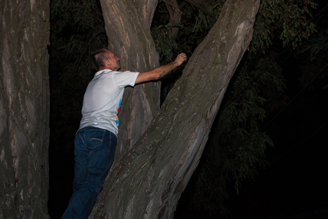 Неравнодушные люди пытались сами снять котенка. Человек 5 вскарабкивались на дерево, даже падали.