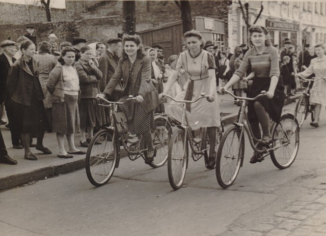 На снимках - велосипедистки на первомайской демонстрации; парк имени Тараса Шевченко; один из двух бонов на Днепре: первый, с танцевальным мини-площадкой, принадлежал вагоностроительном завода имени газеты «Правда», а на другом (ДДРЕСивському) собирались любители домино и шахмат.