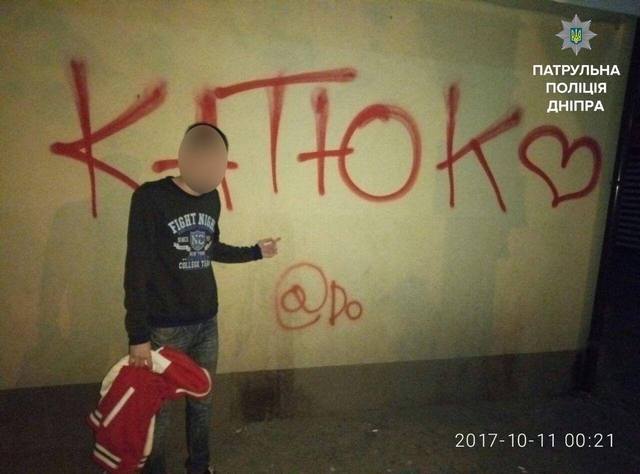Той же ночью на улице Гальченко патрульные обнаружили молодых людей, которые делали надпись на заборе. Надпись рекламировала возможность приобретения запрещенных веществ.