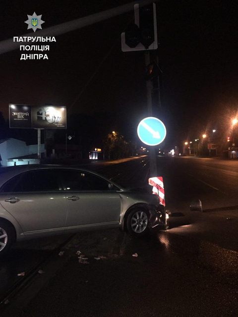 12 жовтня, близько 4-ї години ночі патрульний екіпаж помітив на перехресті Запорізького шосе та проспекту Богдана Хмельницького автомобіль Toyota Avensis, який скоїв наїзд на світлофорну опору.