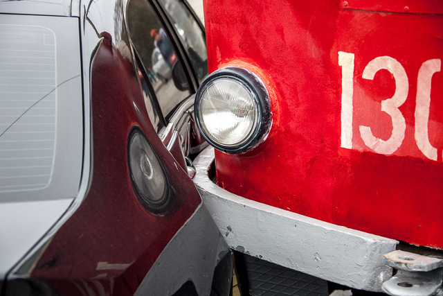 Трамвай въехал в Honda.