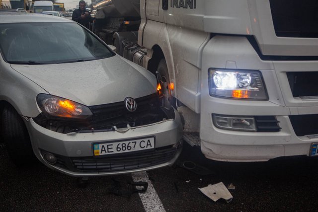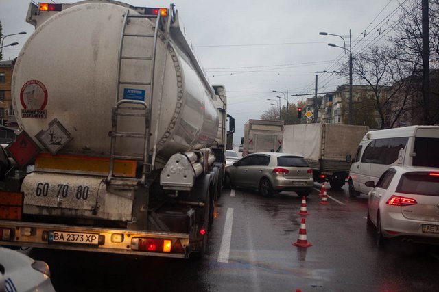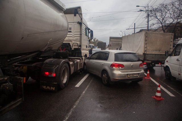 2 ноября на Слобожанском проспекте столкнулись бензовоз и Volkswagen. В результате аварии образовалась пробка.