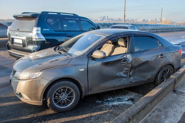 16 ноября утром автомобили, двигающиеся по Усть-Самарскому мосту, не рассчитали дистанцию и создали 4 ДТП. Одной из причин аварий стала скользкая дорога.