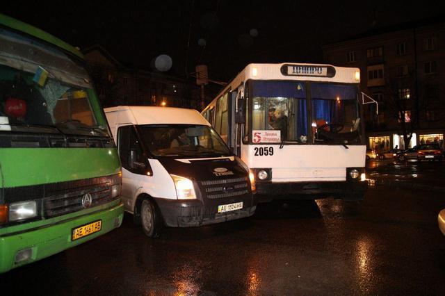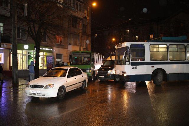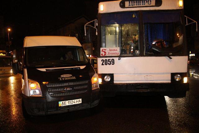 В этот момент водитель троллейбуса, высадив пассажиров, сдал назад, чтобы объехать ДТП и врезался в подъехавший справа Ford Transit. В обеих авариях никто не пострадал. Движение затруднено, образовалась пробка. На месте аварии работает полиция.