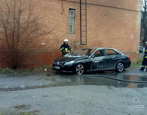 Сообщение о возгорании автомобиля «Mercedes» у здания суда поступило в дежурную часть Амур-Нижнеднепровского отделения полиции 14 декабря в 14.30.