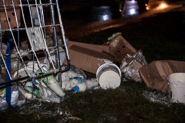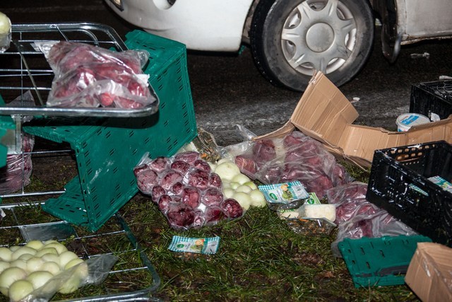 Полиция устанавливает, кому принадлежат продукты и разыскивает водителя автомобиля. Жители города уже попытались забрать часть продовольствия, однако, полиция находится на месте, чтобы не допустить этого. Через время продукты обещают убрать с обочины и проезжей части. Авария не мешает проезду автомобилей.