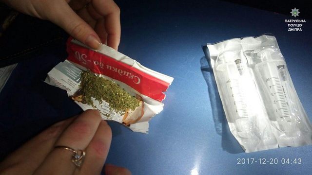 18-річна жінка теж зізналася, що має заборонені речовини. В неї під час огляду виявили 8 флаконів з невідомою речовиною, схожою на наркотичну.