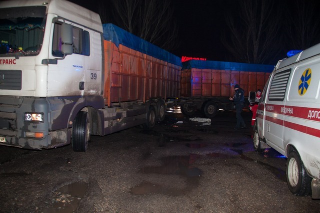Водитель фуры двигался по Донецкому шоссе в сторону города и начал поворачивать перед ТЦ «Караван». В это время, шоссе в неположенном месте переходила женщина. Водитель не заметил неизвестную в темное время суток и наехал на нее задним колесом. Женщина скончалась на месте.