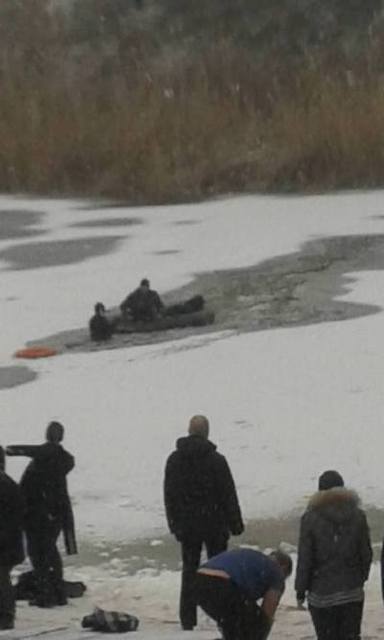 Не теряя времени, заместитель начальника 37-й государственной пожарно - спасательной части, Виталий Котарев, бросился на спасение: с помощью надувной лодки добрался до места провала и спас мужчину и его четвероногого друга.