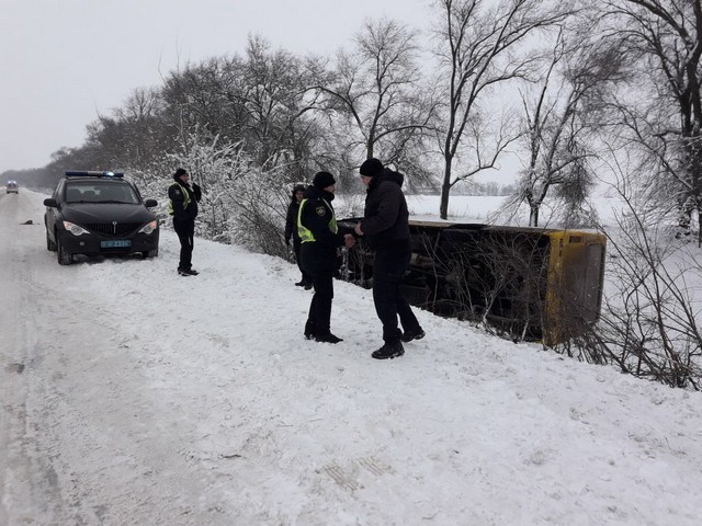 22 января на трассе Днепр — Николаев произошло ДТП. В районе поселка Софиевка перевернулся автобус с пассажирами.