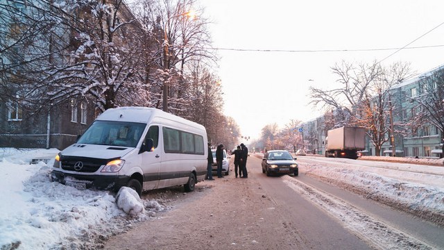 26 января около 16:15 на проспекте Ивана Мазепы случилось ДТП. Пытаясь предотвратить столкновение, Mercedes Sprinter влетел в сугроб.