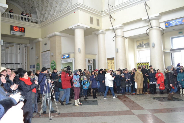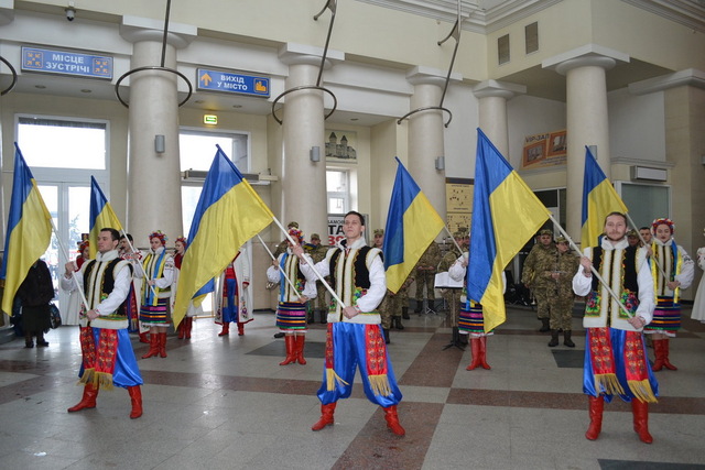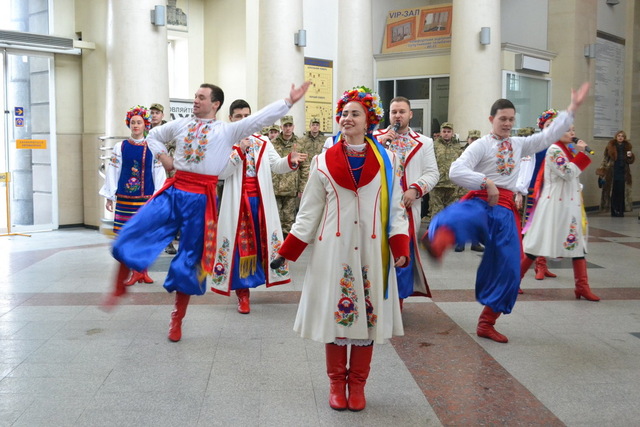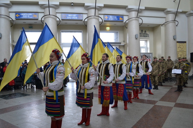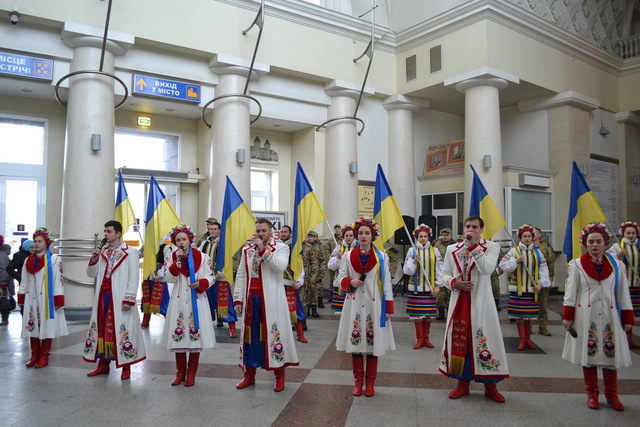 Сегодня, 29 января, на главном вокзале Днепра прошел патриотический флешмоб, посвященный 100-летию боя под Крутами.