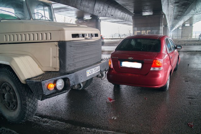 Под Кайдакским мостом автомобиль Chevrolet въехал в бетономешалку