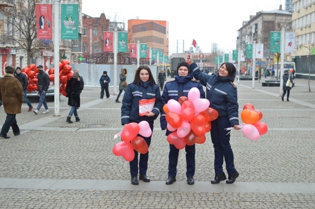 В центре города многим прохожим они подарили воздушные шарики, валентинки с любовным предсказанием, а также вручили открытки на тему «Берегите свое жилье от пожаров» и «Выход на лед запрещен».