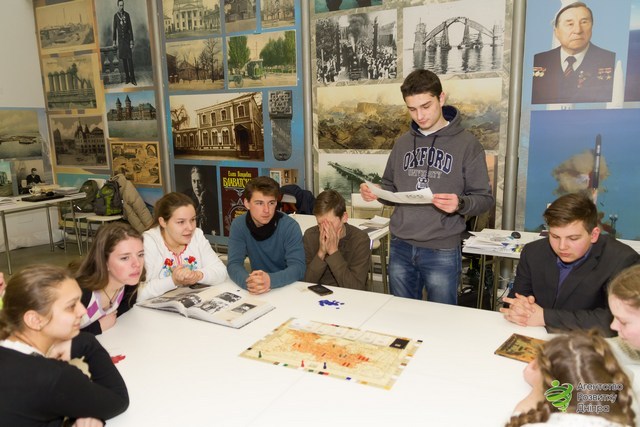 После экскурсий в «Агентстве развития Днепра» днепровских школьников ждала настольная игра «Украинская революция 1917 - 1921 гг.". Во время нее дети углублялись в период освободительной борьбы украинцев в начале ХХ века.