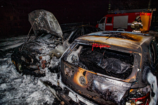 «Первым загорелся автомобиль Volkswagen, но из-за сильного ветра пламя перекинулось на припаркованный рядом Renault. Сильнее пострадал Volkswagen — ремонту он не подлежит. У автомобиля Renault повреждена левая часть кузова и моторная часть», — пояснил командир отделения Сергей Палеха.