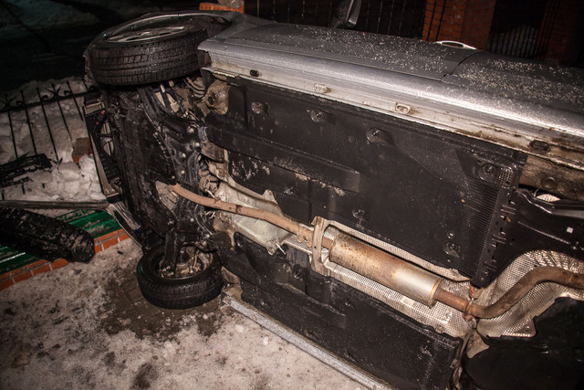По словам сотрудников патрульной полиции, автомобиль ехал в сторону Донецкого шоссе. «Водитель не справился с управлением и его занесло», — рассказал патрульный. «Полет» автомобиля остановил столб и забор храма Святых мучениц Веры, Надежды, Любови и матери их Софии.