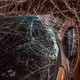 Микроавтобус застрял среди кустов и деревьев. На автомобиле многочисленные повреждения и разбиты стекла. На подушке безопасности видны следы крови. После потери контроля над управлением на повороте, автомобиль проехал около 50 метров через кусты и деревья, сбивая все на своем пути. По дороге также был утерян номерной знак.