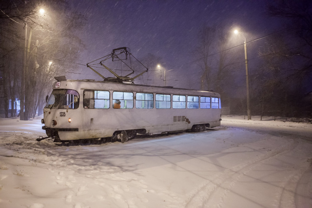 Трамвай «выбросило» с рельсов — и вагон встал перпендикулярно путям. По словам правоохранителей, причиной аварии стали сложные погодные условия. В 22:32 на место прибыла спецтехника, которая должна была установить трамвай обратно на рельсы.