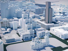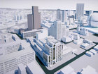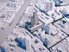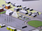 Поскольку стадия градрасчета не обязывает разработку архитектурного облика объекта, проектировщик ограничился условными обозначениями объемов на демонстрационных материалах.