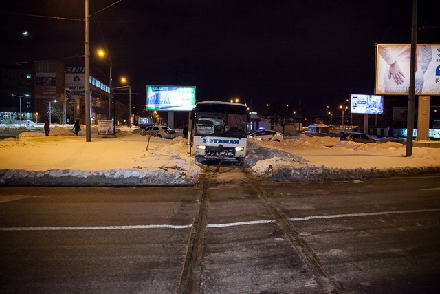 «Около 20:00 водитель неизвестного автомобиля не справился с управлением и заехал в снег на обочине. В результате машина перегородила движение трамваям. Водитель автобуса Lotsman решил объехать пробку через железнодорожные пути и застрял там в снегу. Легковой автомобиль вскоре вытолкали и трамваи возобновили движение. Чтобы вытянуть автобус на место вызвали грузовой автомобиль»,- рассказал инспектор патрульной полиции Локоть Павел.