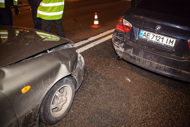 Оба автомобиля повреждены. У Daewoo разбиты переднее крыло и бампер, а у автомобиля BMW пострадал лишь задний бампер.