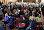 Зал, в котором проводилась встреча, был полностью заполнен людьми, двери заблокированы желающими попасть внутрь.