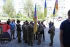 Еще до начала встречи вокруг школы было многолюдно. Кроме полицейских, которые приехали следить за порядком, у входа собрались общественные активисты из нескольких патриотических организаций Каменского. Многие из них были в военной форме и с украинским флагом. Некоторые – с плакатами. Они возмущались тем, что народный депутат выбрал местом для встречи именно школу.