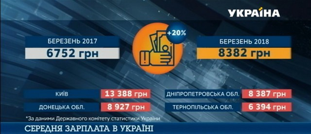 Средняя зарплата в Украине к концу 2018 года может составить 10 тысяч гривен.