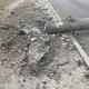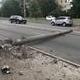 От удара столб электроопоры рухнул на проезжую часть и перекрыл две полосы движения в сторону кольца на Набережной Победы.