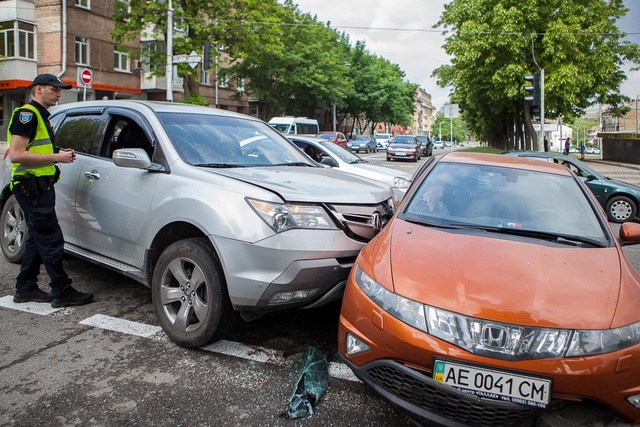 По словам лейтенанта полиции Кирилла Шевченко, автомобиль Acura двигался по улице Воскресенской в крайнем правом ряду, Honda двигалась по Святослава Храброго в среднем ряду. Водитель автомобиля Honda подумала, что светофор не работает, и по знаку «Главная дорога» продолжила движение. Водитель Acura двигался на зеленый. В результате произошло столкновение. Обе машины получили значительные повреждения.
