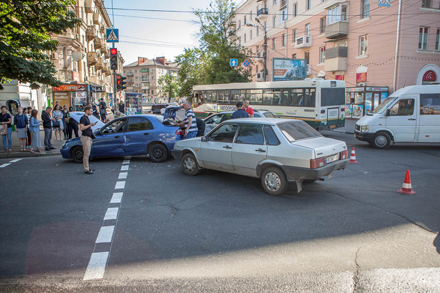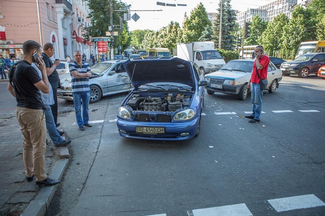 1 июня, приблизительно в 8:15, на пересечении проспекта Дмитрия Яворницкого и улицы Сечевых Стрельцов произошло ДТП с участием трех автомобилей. В результате аварии пострадала женщина.