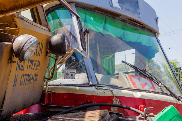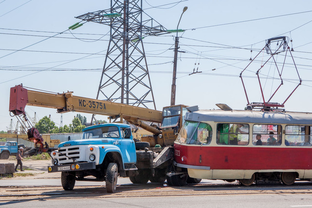 5 июня на проспекте Богдана Хмельницкого кран въехал в трамвай №12.