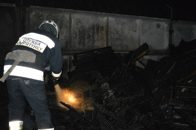 По прибуттю рятувальників на місце події встановлено, що горить древісно-полімерний компонент для виготовлення терасної дошки на площі 100 м. кв. та дерев’яні піддони на площі 70 м. кв..