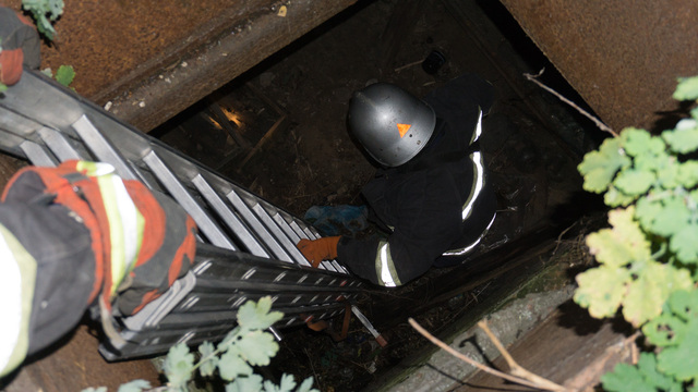 Спасатели быстро отреагировали на вызов.Во дворе на Владимира Мономаха, 27, находится множество открытых погребов, в которые в ночное время может провалиться даже человек. Люки уже давно растащили на металл, поэтому местные жители попытались обезопасить место, забив погреб ветками. Именно этот небезопасный двор мама-кошка с выводком маленьких полосатых крикунов выбрали в качестве места обитания. Поэтому не мудрено, что одному из малышей «посчастливилось» упасть в яму.