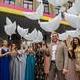 В завершение мероприятия выпускники сфотографировались с мэром на память и, загадав желание, запустили в небо воздушные шары в форме голубей.