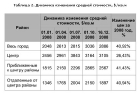![]() Таблица 2. Динамика изменения средней стоимости, $/кв.м |