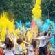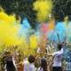 Кульминацией праздника стал флешмоб, когда участники поделились на две части: одна с холи желтого цвета, а вторая - синего. По команде ведущей все подбросили краску вверх, и над летней эстрадой парка образовалось облако цветов Государственного флага Украины.