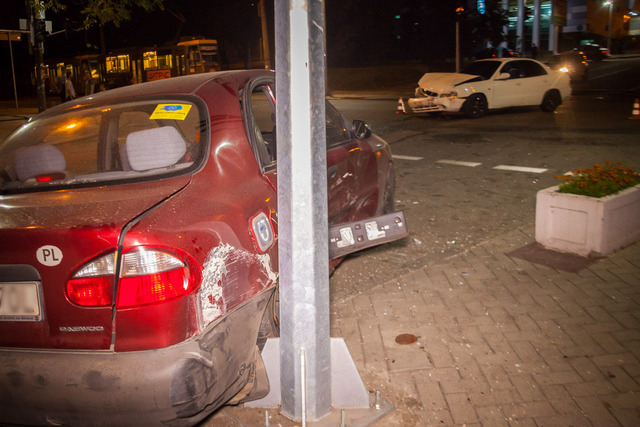 На Сечевых Стрельцов столкнулись два Daewoo: Lanos отбросило в столб