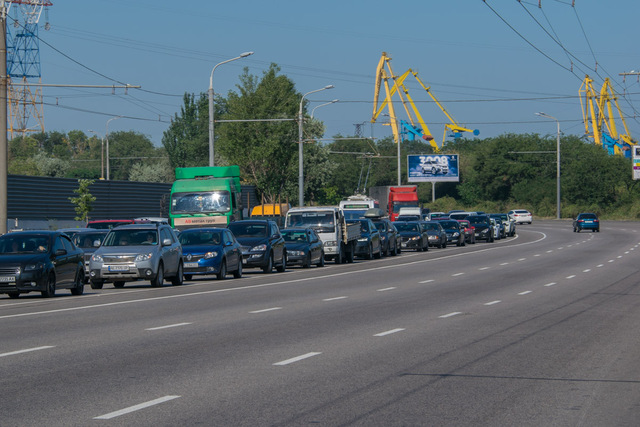 На Набережной Заводской от Кайдакского моста в сторону центра образовалась пробка.